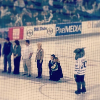 Enjoying senior night with mom.